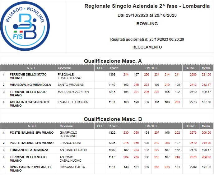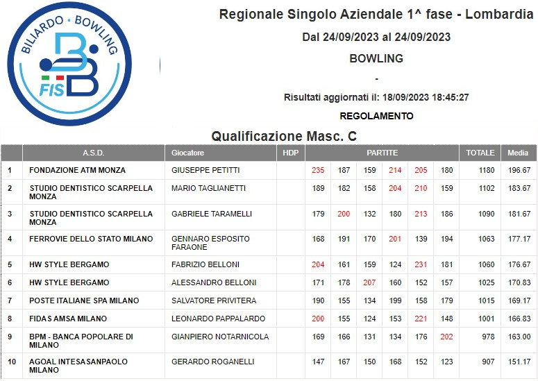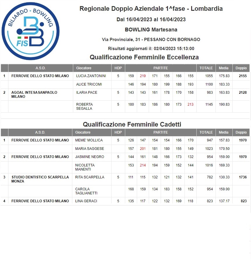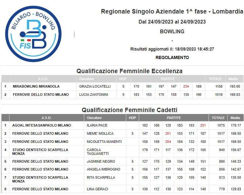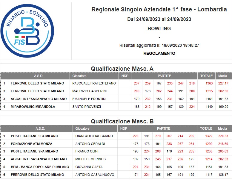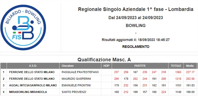 Regionale Squadra Aziendale | Regionale Doppio Aziendale | Regionale Singolo Aziendale | |||||
