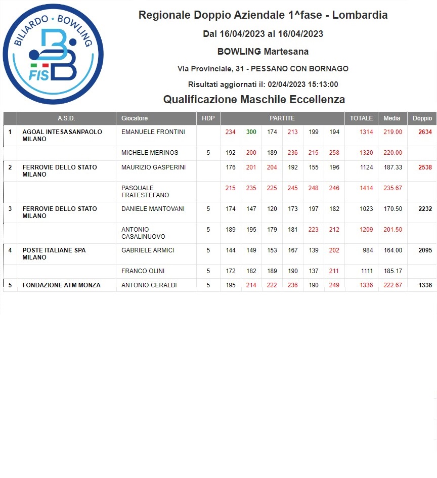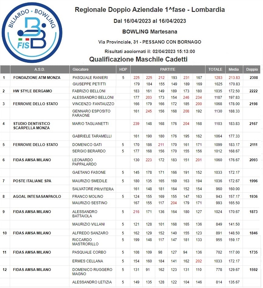 1 Blocco dei Campionati Italiani causa Covid-19, emanata dal CONI - FISB, solo prima fase 2 Doppio aziendale non disputate nessuna fase | 3 Deroga dopo covid-19 | ||||||