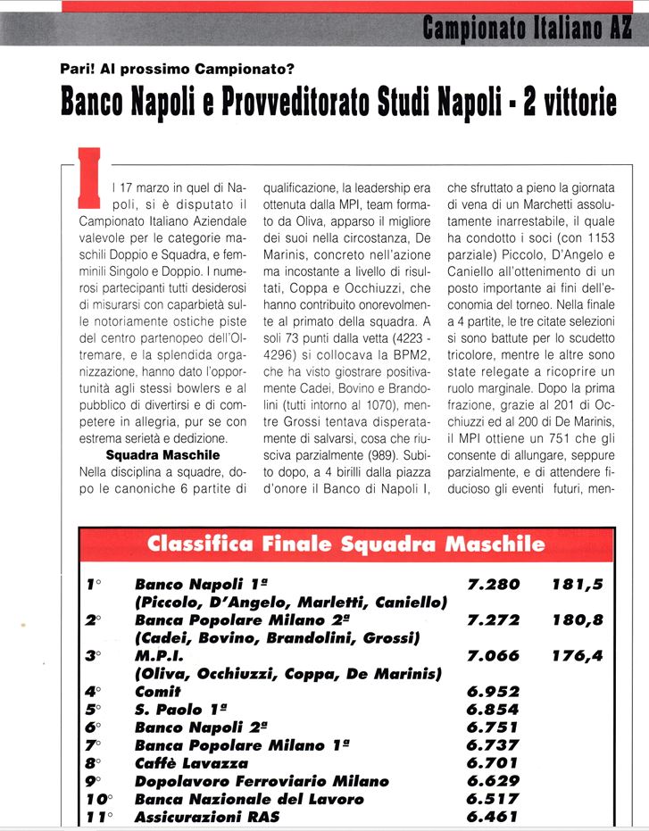 92/93 22^ | Milano | Circolo Comit di Milano | Banca d'Italia di Roma | Leonessa Ten Pin di Brescia |